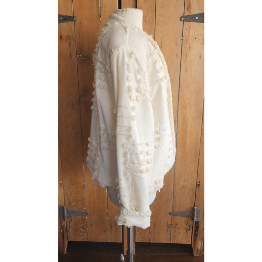 Vintage 80s Handwoven Blazer Cream Textured Cotton by Crystal Wearable Art