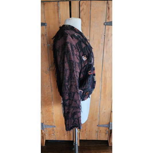 Vintage 80s Handwoven Brown Blazer Applique Fringe by Crystal