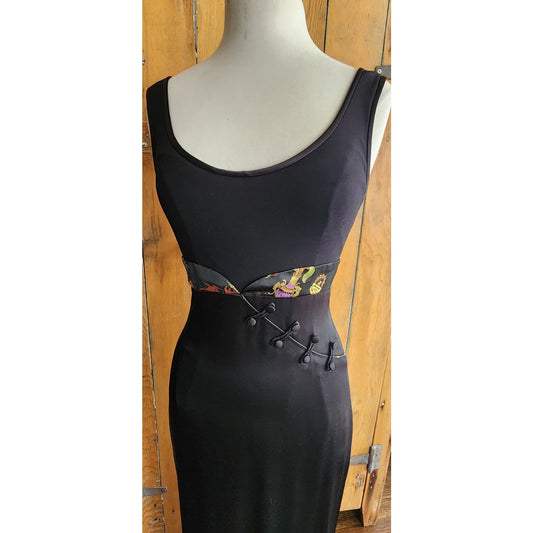 Vintage 90s Nicole Miller Evening Dress Black w/Chinese Embroidery