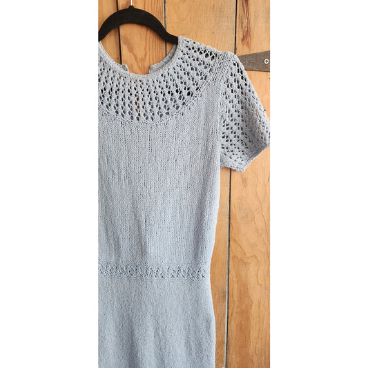 Vintage 30s Knit Dress Baby Blue Short Sleeve