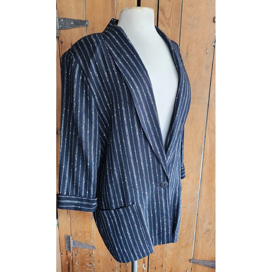 Vintage 80s Blazer Black Pinstripe Print by Mitchell