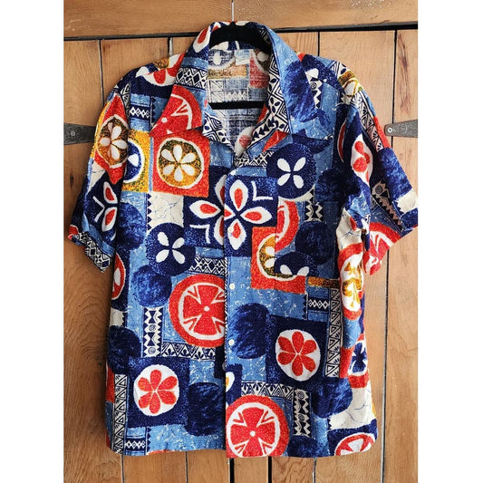 Vintage 50s Hawaiian Shirt Bark Cloth Tiki Print