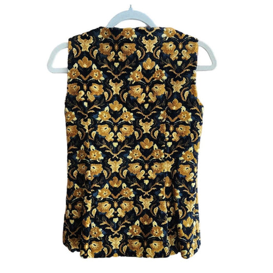 Vintage 60s Tapestry Vest Gold & Black Boho Brocade Velvet