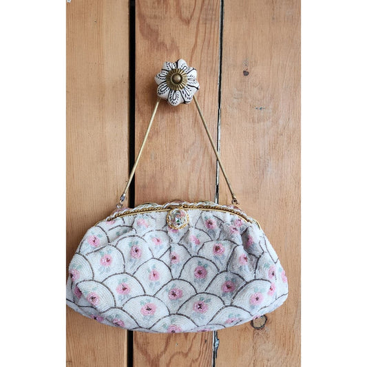 Vintage 50s Beaded Handbag Michel Swiss White Pastel French Purse Microbeading