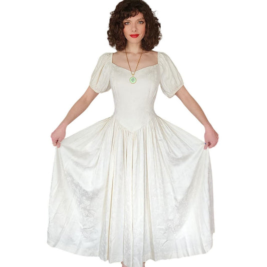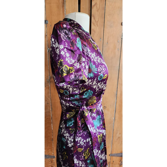 Vintage Betsey Johnson Purple Dress Floral Silkprint Puffed Sleeves