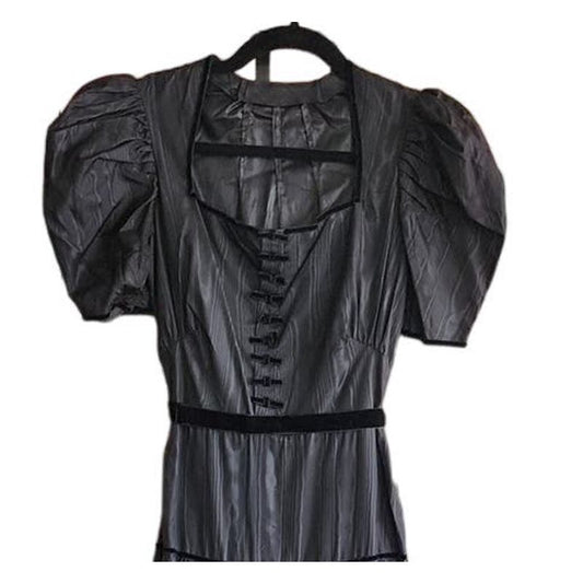 Vintage 30s Black Evening Dress Waterfall Taffeta Short Puffed Sleeves