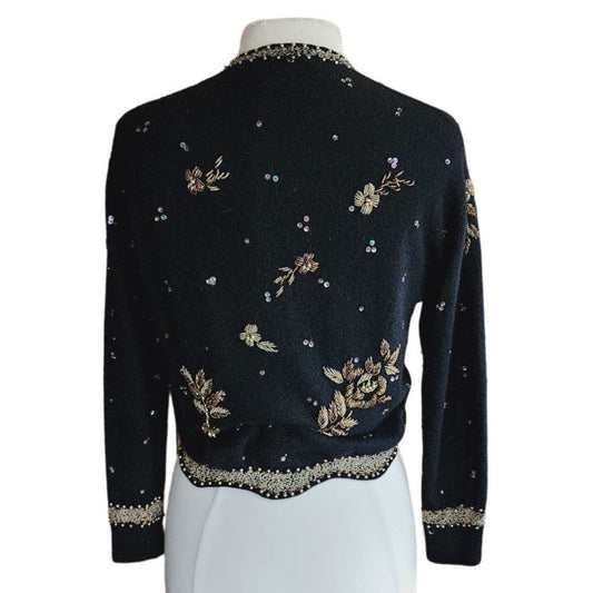 Vintage 50s Black Beaded Cardigan Copper Gold Miles Sweater