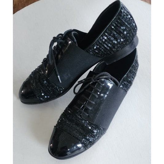 CHANEL Lace Up Shoes Loafers Black Patent Leather & Sequins 38 1/2Regular price $325.00 USDRegular priceUnit price per$0.00 USDSale price $325.00 USDSold out