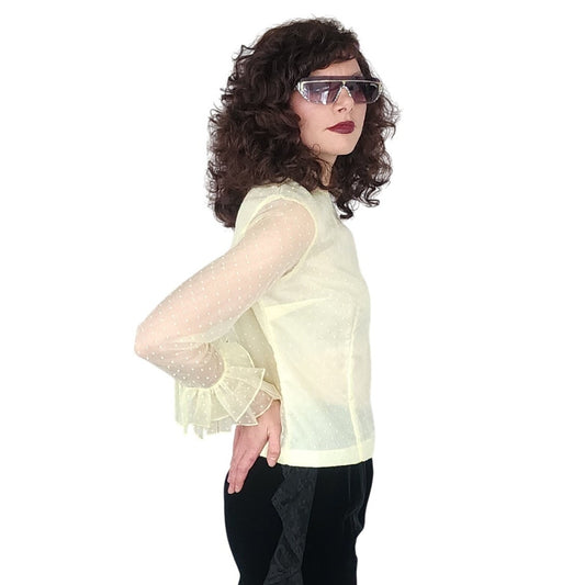 Vintage 1970s Yellow Sheer Blouse Ruffled Sleeve Cuffs Dotted Swiss by MajoretteRegular price $60.00 USDRegular priceUnit price per$0.00 USDSale price $60.00 USDSold out