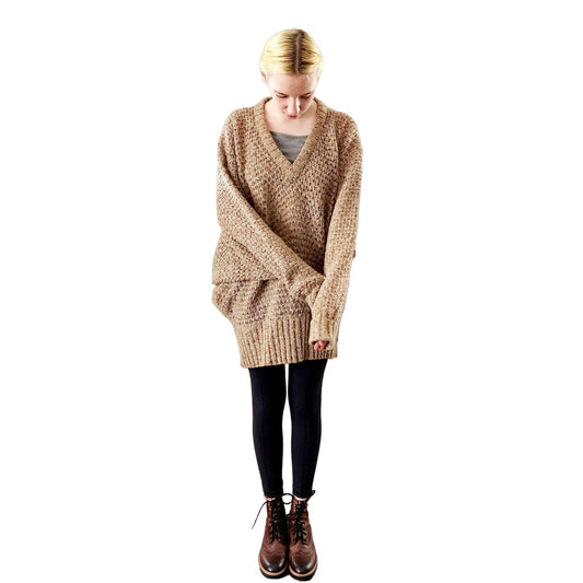 Vintage 70s Beige Oversized V Neck Sweater Outlander Acrylic Knit