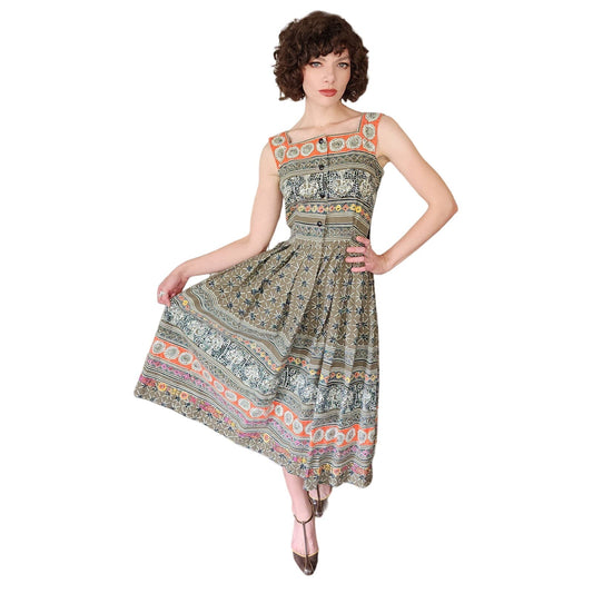 Vintage 70s Sun Dress Multicolored Cotton Print Hal Hardin