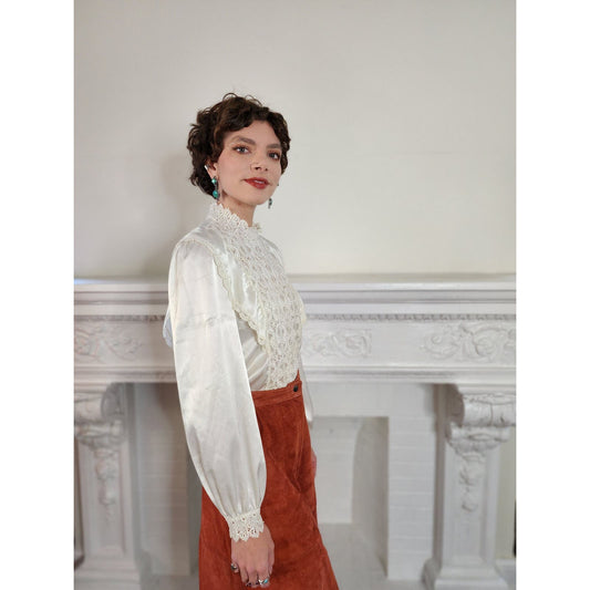 Vintage 80s Cream Blouse Neo Edwardian Lacy Shirt