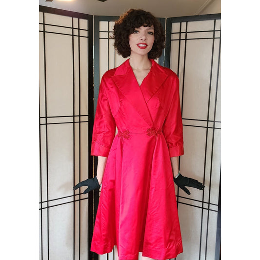 Vintage 50s Red Satin Evening Dress by Dynasty