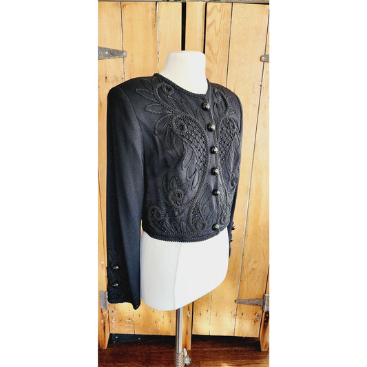 Vintage 80s Black Cropped Blazer Embroidered Beaded Marie St Claire