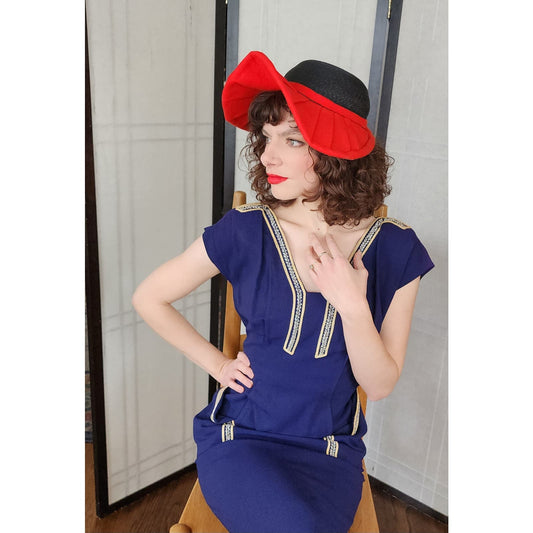 Vintage 40s Wide Brimmed Hat Red Navy Blue Asymmetrical Modernist