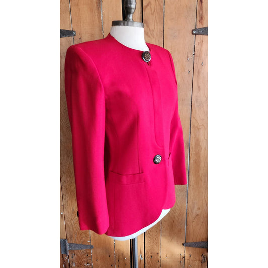 Vintage 80s Red Blazer by Kasper Single Button Closure