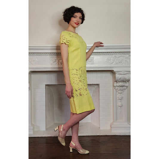 Vintage 60s Yellow Summer Dress Cut Lace 20s Style