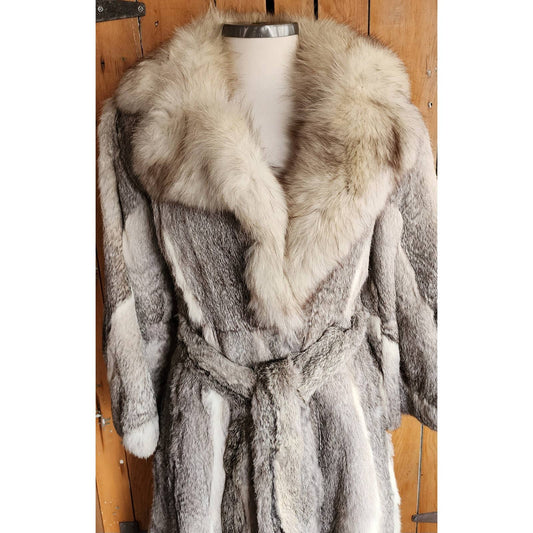 Vintage 70s Gray Fur Boho Coat Belted Fox & Rabbit Medium