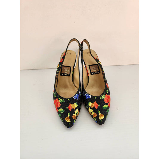 Vintage 90s Slingbacks Dark Floral Print Shoes Kitten Heels Nina size 6.5