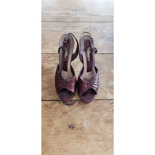 Vintage 50s Shoes Burgundy Red High Heel Slingbacks Amano 8