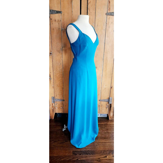 Vintage 90s Armani Blue Evening Dress Criss Cross Back