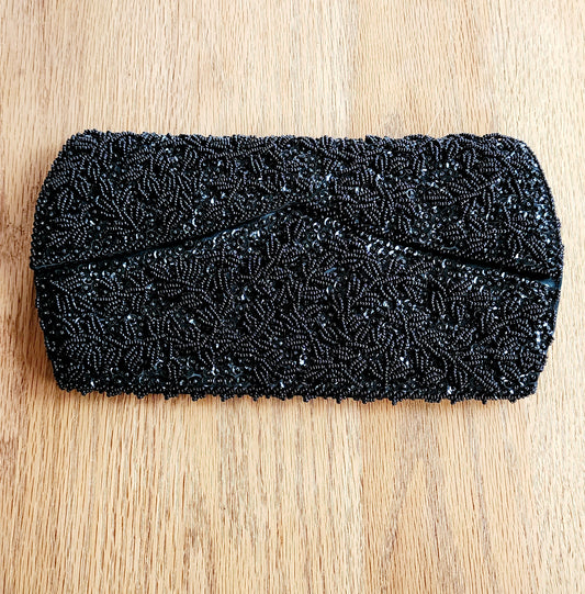 50s Black Beaded Clutch Bag La Regale