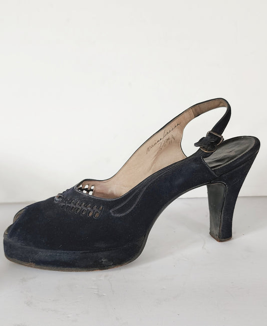 40s Peep Toe Black Shoes High Heel Slingbacks 10