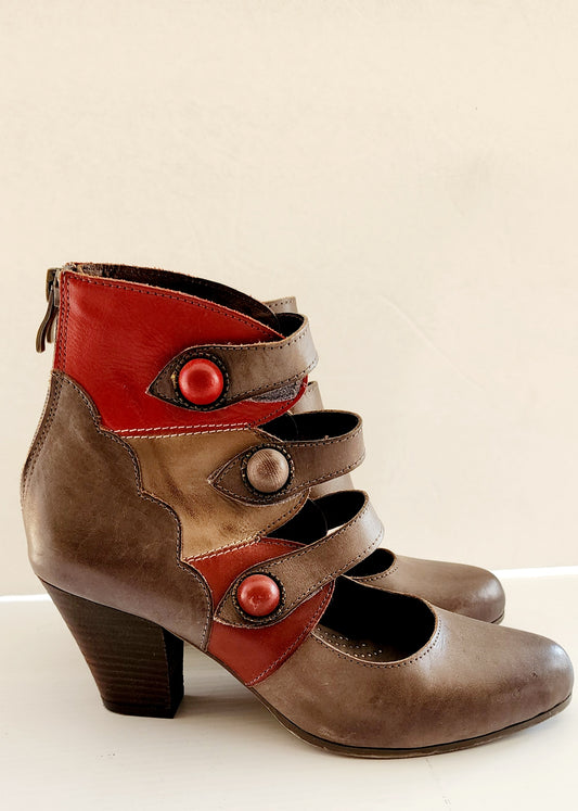 L'Artiste Gray Ankle Booties Multistrap Shoes 38