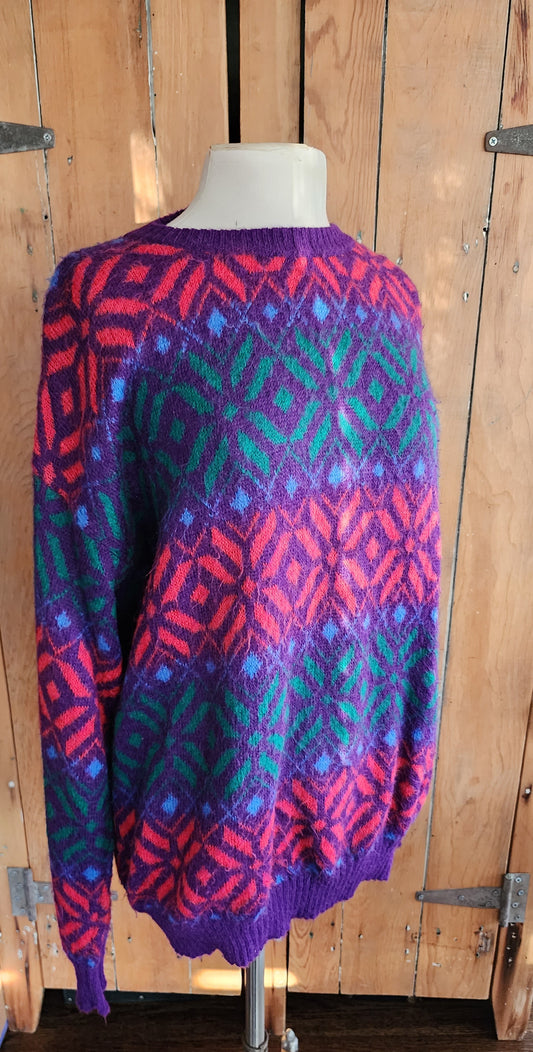80s Benetton Sweater Colorful Wool Snowflake Pattern