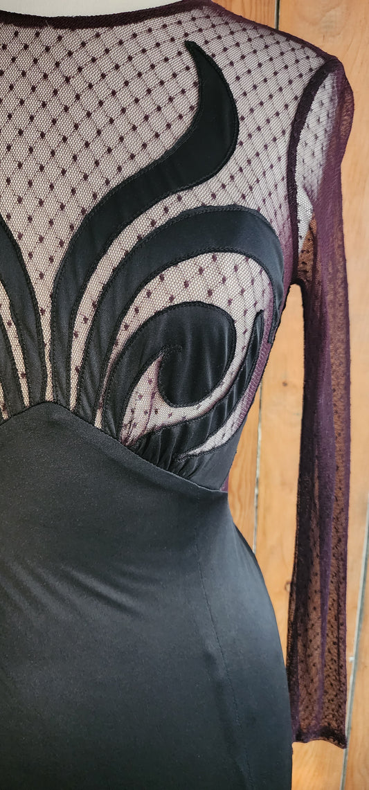 90s Black Dress Fredericks of Hollywood Sheer Spiral Top