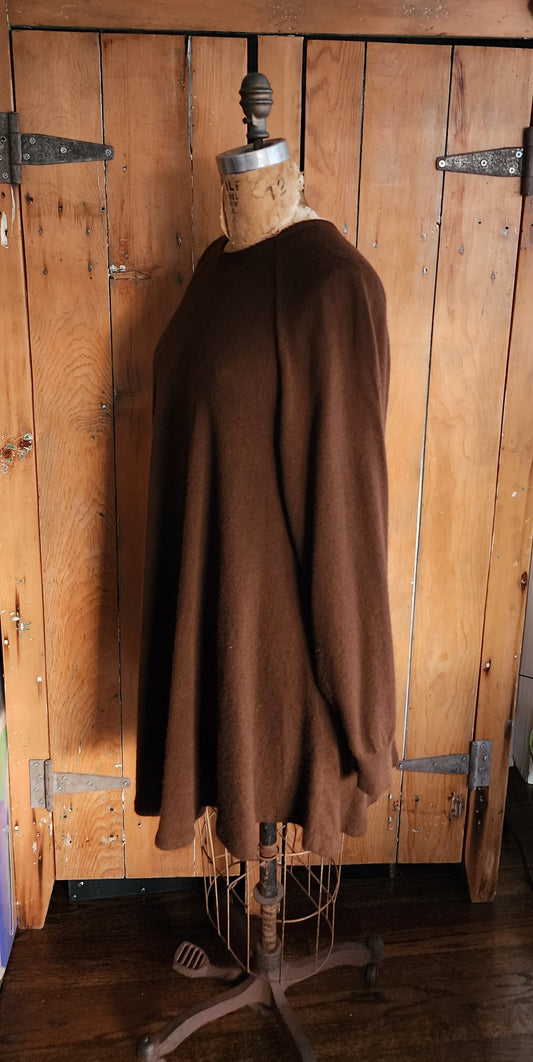 Vintage 90s Cashmere Dress Brown, Trapeze Style Long Sleeved
