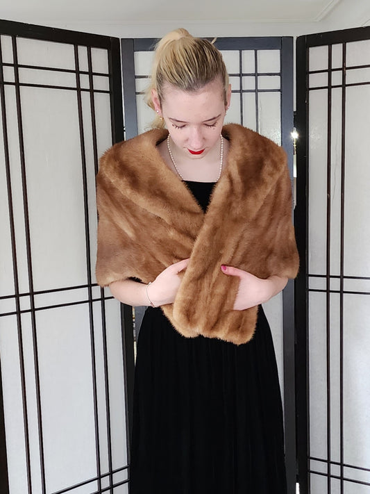 Vintage 50s Mink Fur Wrap Caramel Brown Stole