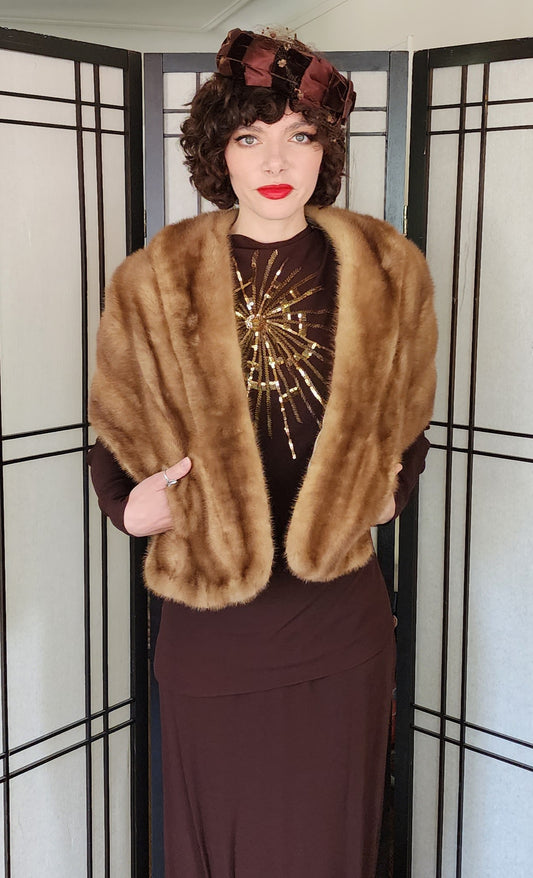 50s Caramel Mink Fur Wrap Stole Emba Autumn Haze