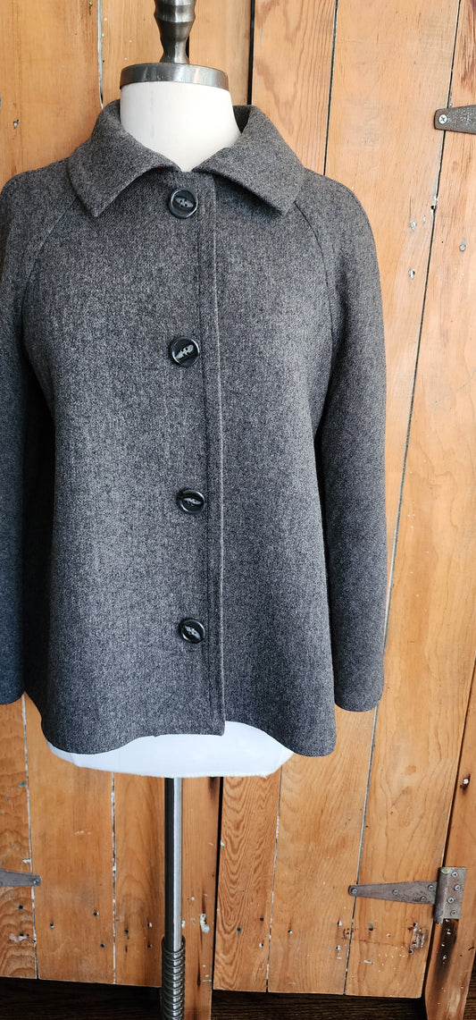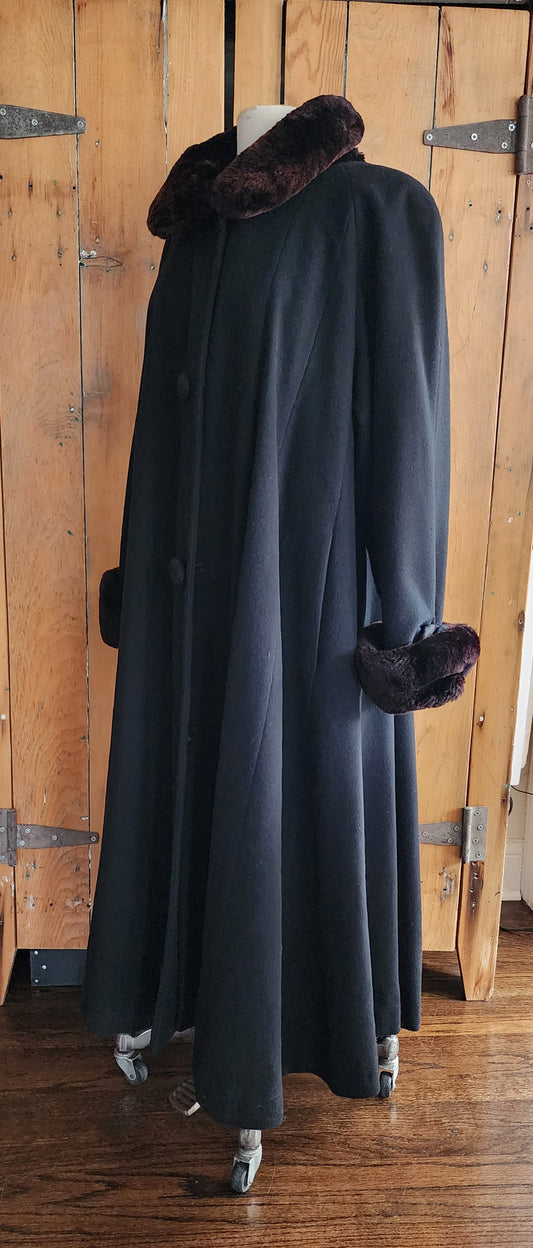 Vintage 80s Black Cashmere Swing Coat Sheared Beaver Fur Collar Cuffs Searle