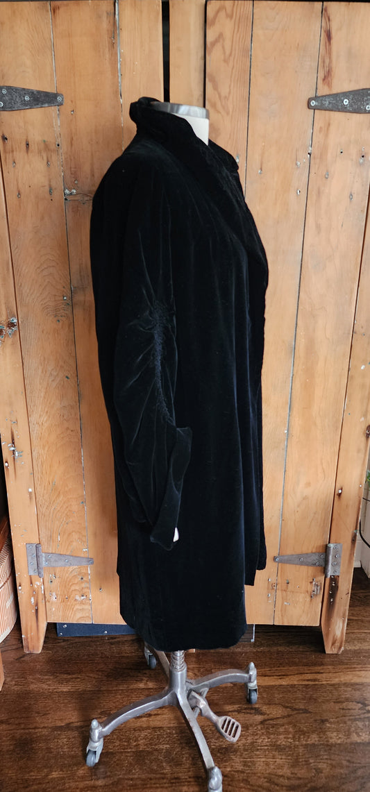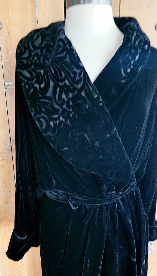 Vintage 80s Black Velvet Robe Coat Neiman Marcus Diamond Tea