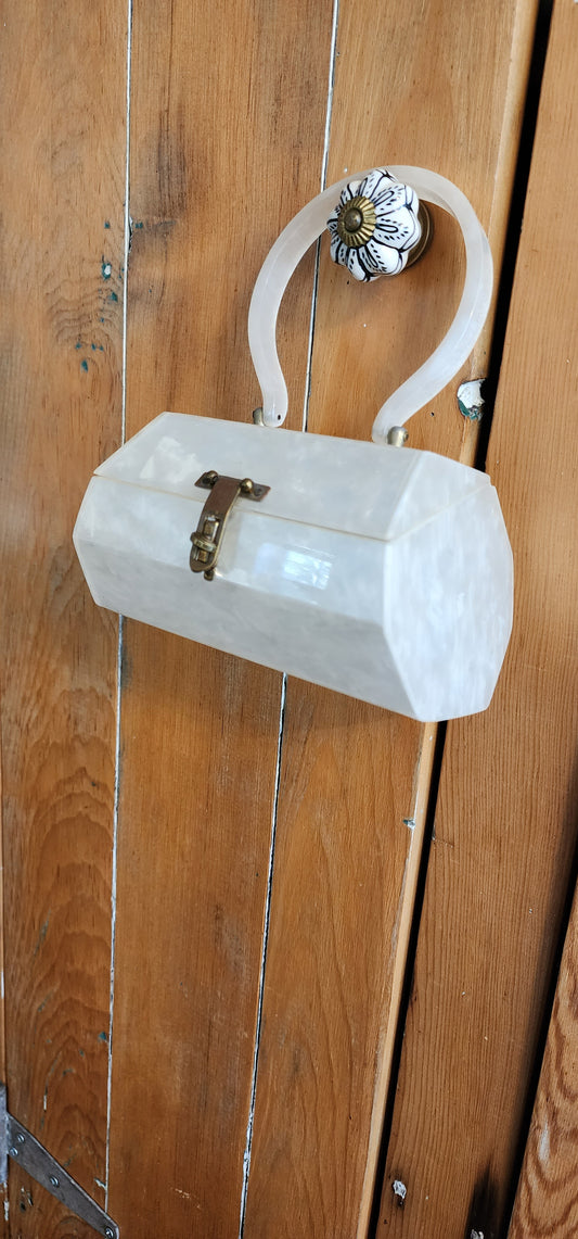 50s White Lucite Bag Top Handle Box Purse by Florida Handbags