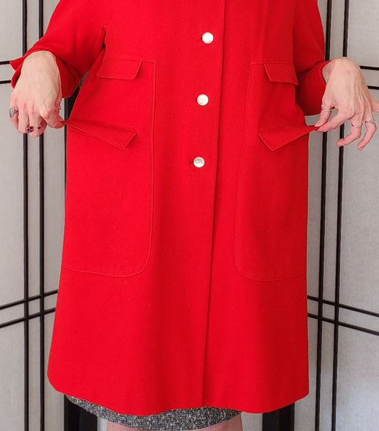 60s Red Wool Coat White Buttons Double Flap Pockets M