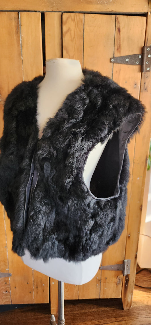 90s Black Rabbit Fur Vest Mens Tibor Leathers