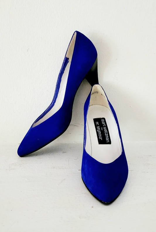 80s Blue Suede Pumps Stuart Weitzman Shoes Heels 6.5