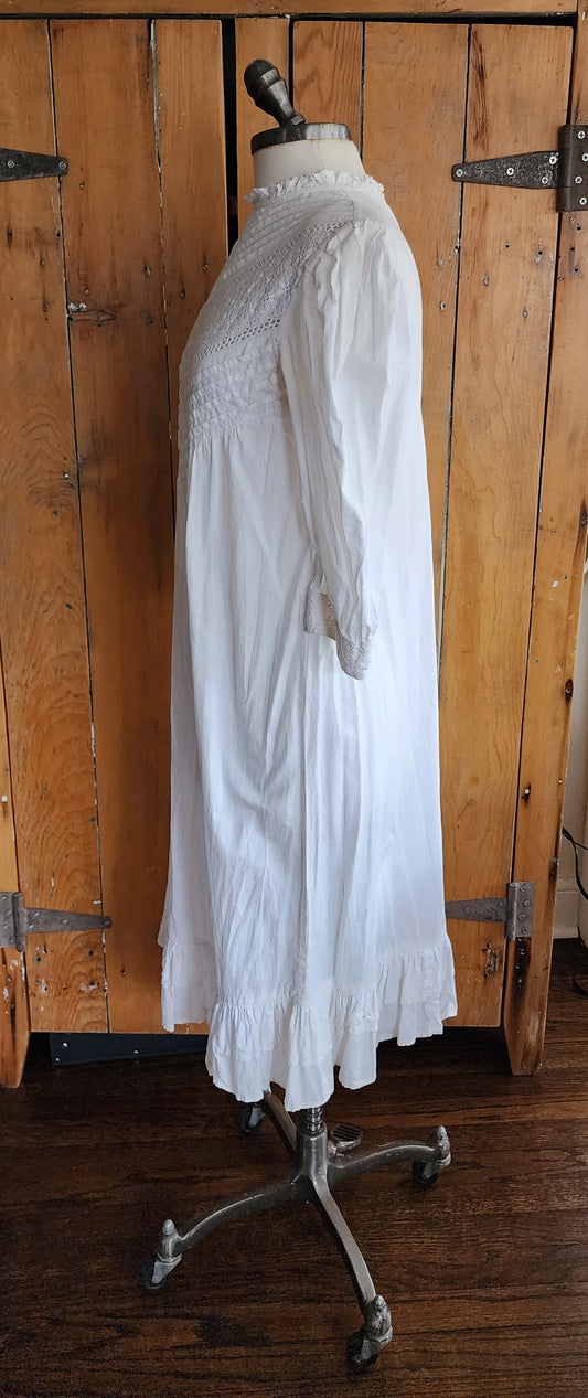 Vintage 80s White Cotton Prairie Style Dress India Cotton Eyelet Embroidery
