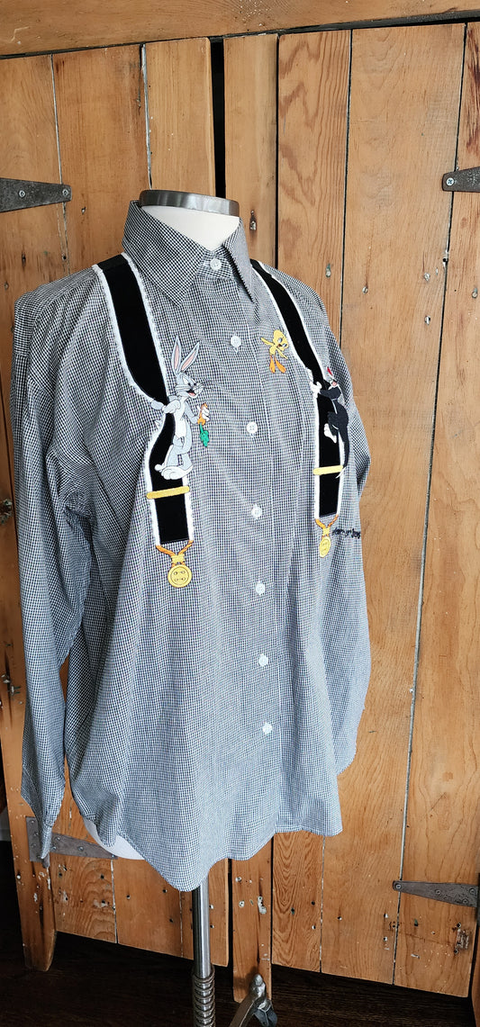 90s Warner Bros Shirt Button Down Checked Print Bugs Bunny Donald Duck