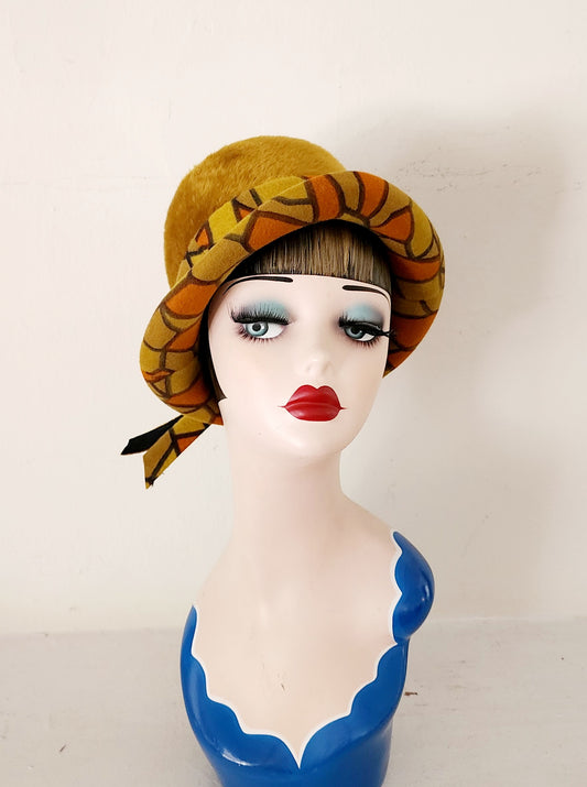 60s Mustard Yellow Brimmed Hat Shaggy Velour Lazarus