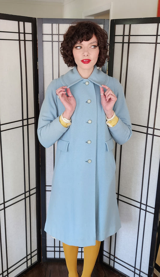 60s Baby Blue Wool Coat by Livingstons Young Town