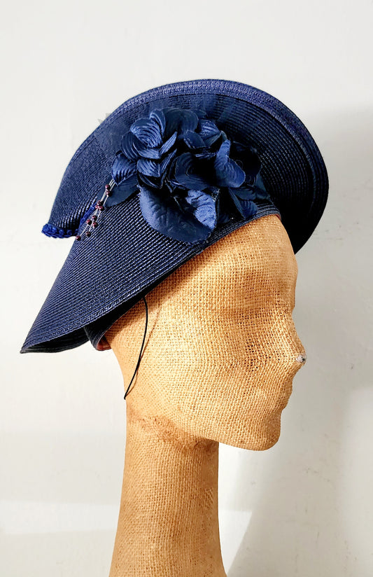 80s Does 30s Navy Blue Straw Hat Asymmetrical Modernist