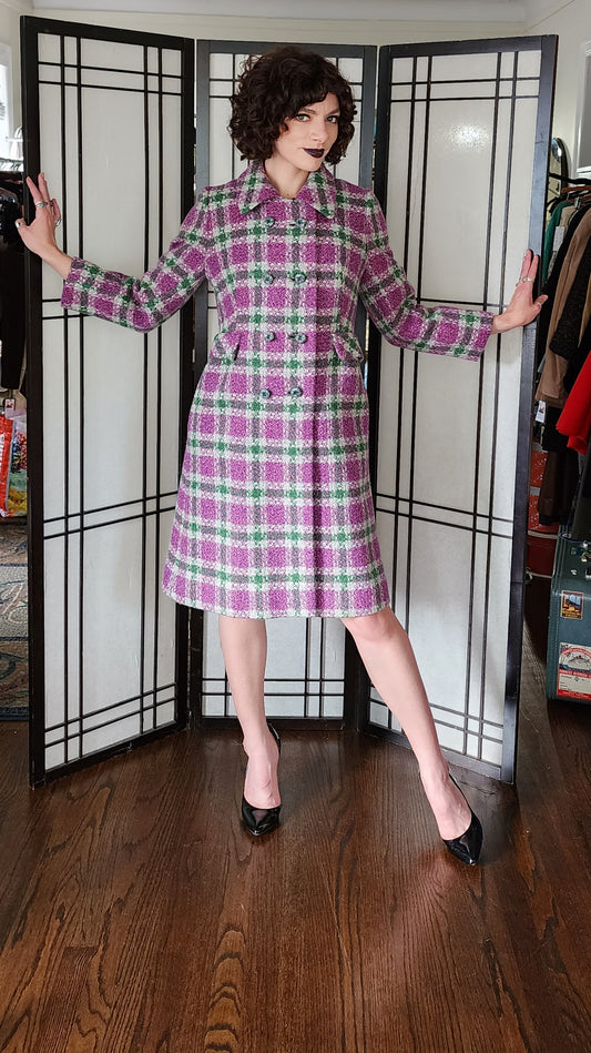 60s Purple Green Plaid Wool Coat Shagmore