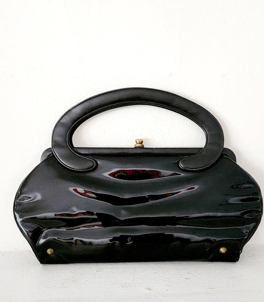 60s Black Bag Patent Leather Curved Handle