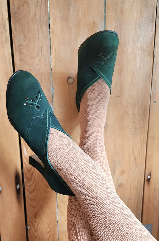 40s Green Suede Shoes High Heel Pumps by Walk Over size 5