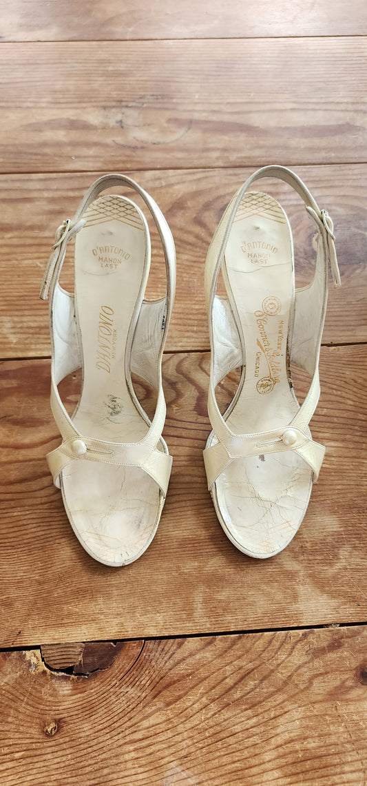 50s White Leather Party Shoes Heels Slingbacks O'Connor Goldberg Size 8