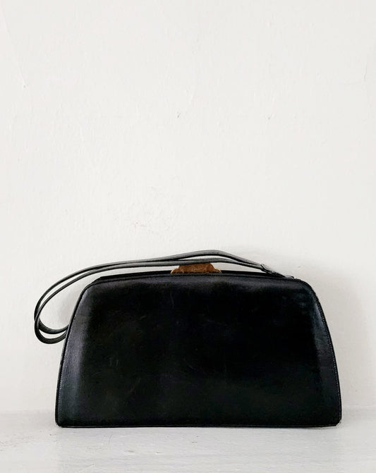 30s Black Leather Bag Gold Art Deco Clasp Evans