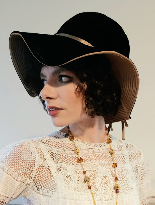 70s Black Velvet Floppy Hat Wide Brim Boho
